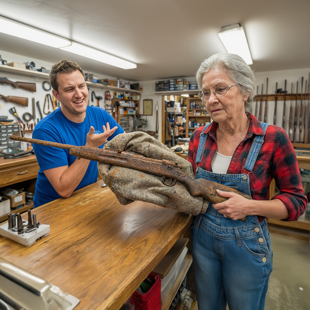 When the woman returned, the rifle lay on the bench—cleaned, stabilized, its history brought back into the light.